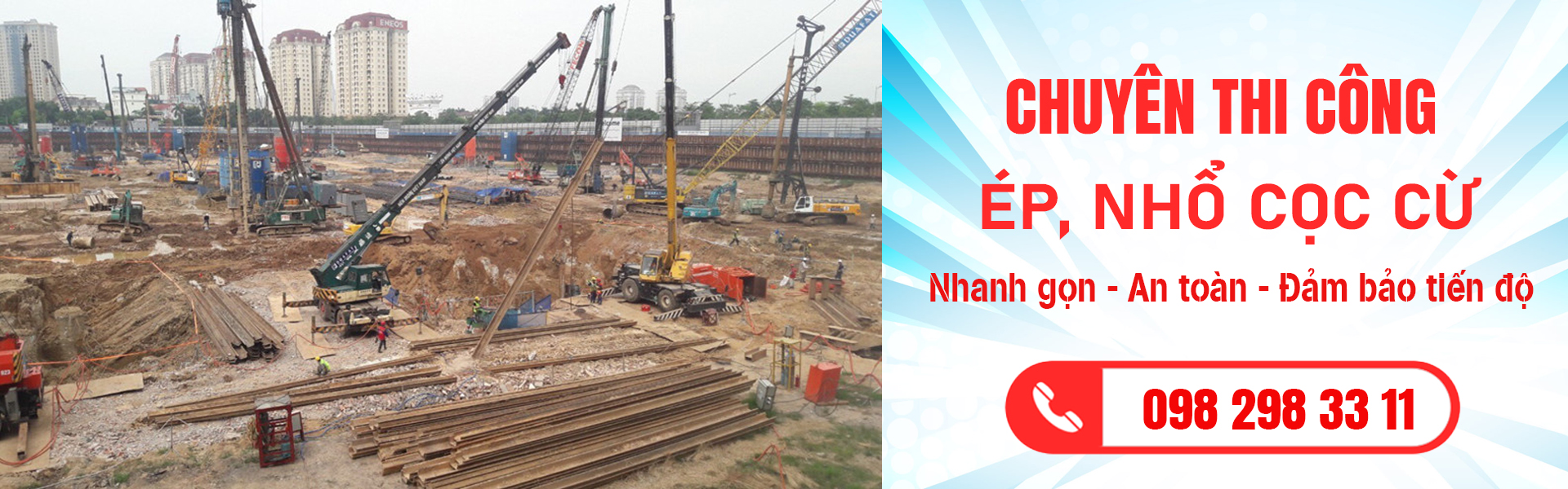 ✅ Công nghệ thi công tiên tiến: Sử dụng các thiết bị hiện đại như búa rung, máy ép thủy lực, máy cẩu chuyên dụng, đảm bảo thi công chính xác, nhanh chóng và an toàn.